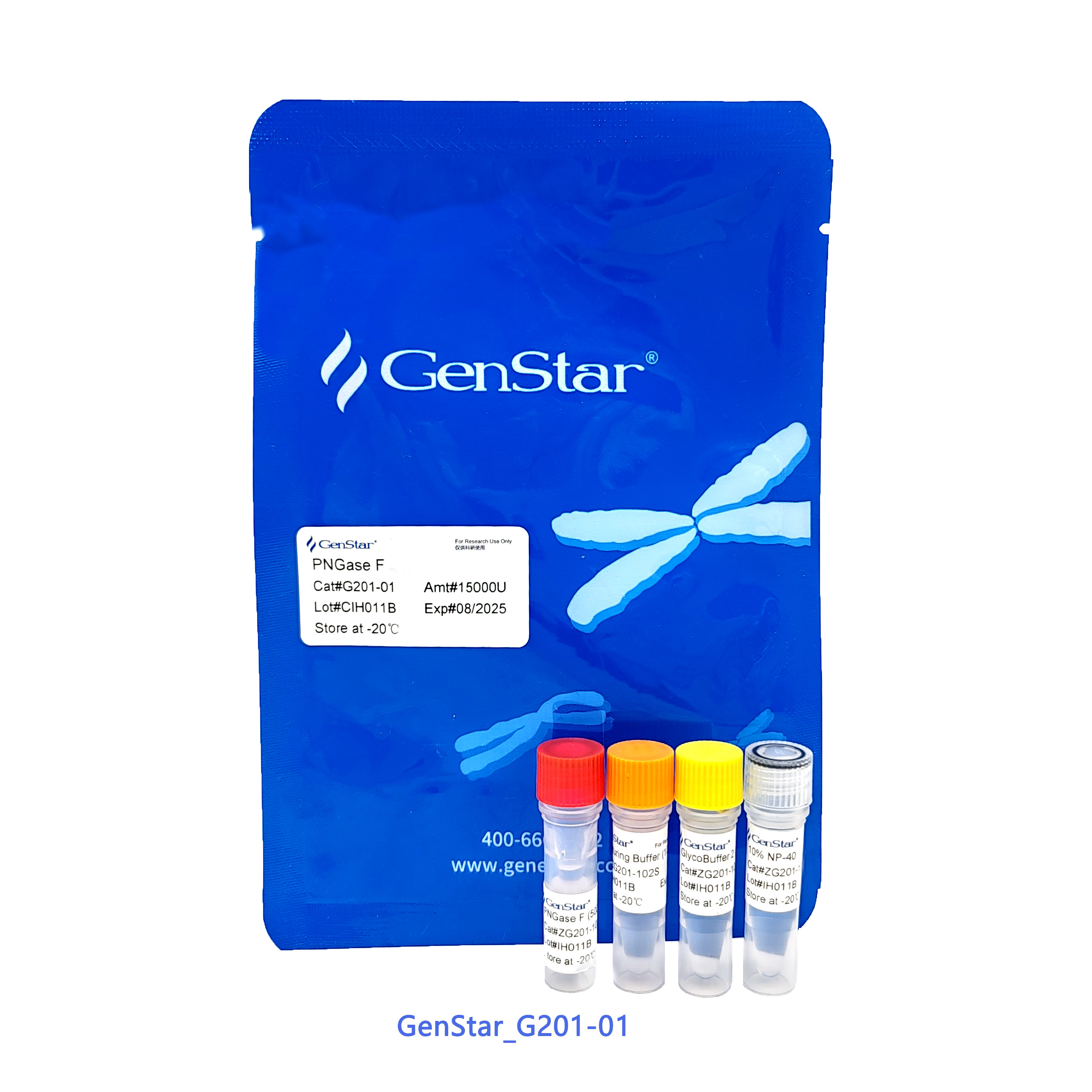 自 2024.08 起,G201 產(chǎn)品進(jìn)行了組分變更。變更后的產(chǎn)品提供肽 N-糖苷酶 F 適配的三種反應(yīng) buffer 即 Denaturing Buffer (10×)、GlycoBuffer 2 (10×)和 10% NP-40,使產(chǎn)品使用更加便捷。