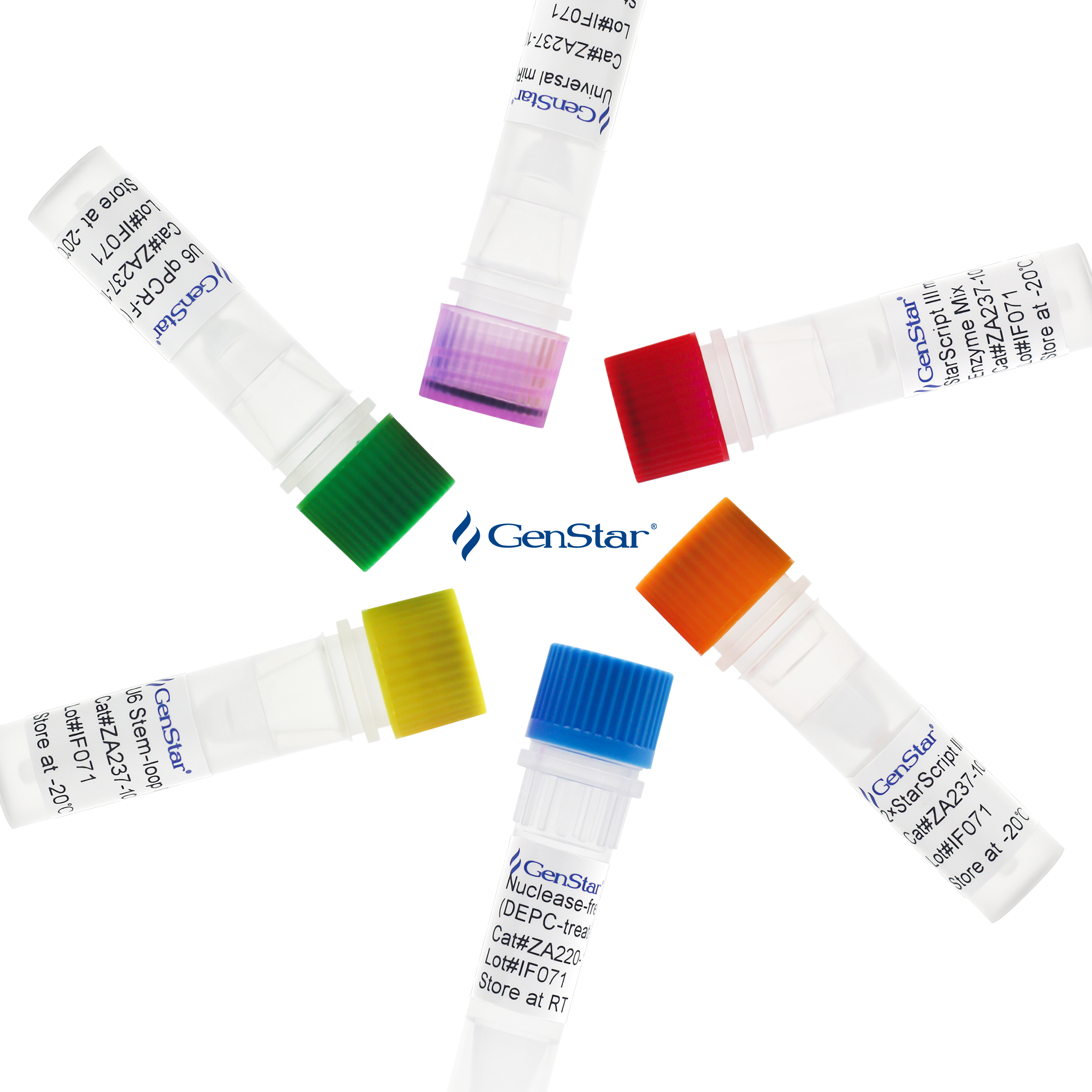 推薦使用通用的莖環(huán)序列為 5'-GTCGTATCCAGTGCAGGGTCCGAGGTATTCGCACTGGATACGAC-3',也可根據(jù)實(shí)驗(yàn)需求選擇其它莖環(huán)序列。通常情況下,逆轉(zhuǎn)錄引物只需在莖環(huán)序列上添加目的 miRNA 3’ 端的 6 個反向互補(bǔ)堿基即可。 此方法特異性高,只對成熟的 miRNA 進(jìn)行反轉(zhuǎn)錄,不受其前體干擾,序列高度同源的 miRNA 也可以精確區(qū)分。使用本產(chǎn)品獲得的逆轉(zhuǎn)錄產(chǎn)物可直接用于后續(xù)的染料法或探針法熒光定量檢測。染料法推薦使用本公司的 2×RealStar Fast SYBR qPCR Mix(Cat#A301),探針法推薦使用本公司的 2×RealStar Fast Probe Mix(Cat#A351),以獲得更優(yōu)的實(shí)驗(yàn)結(jié)果。