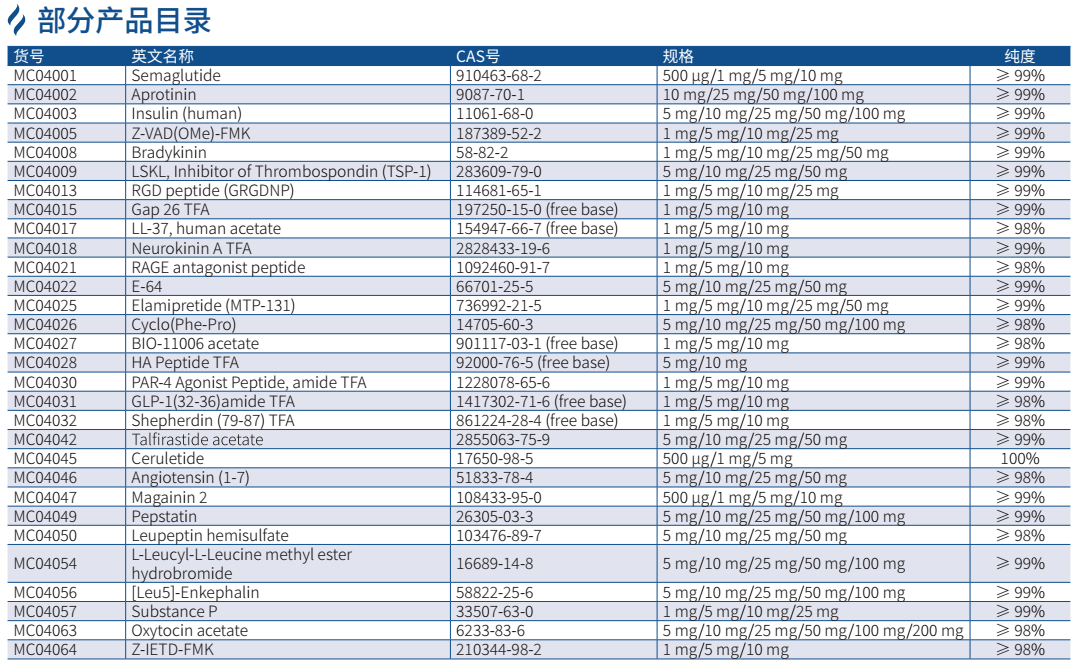 本界面只顯示部分產(chǎn)品信息,若想獲取更多小分子系列產(chǎn)品信息,請聯(lián)系我們銷售或致電技術(shù)支持熱線:400-666-3332