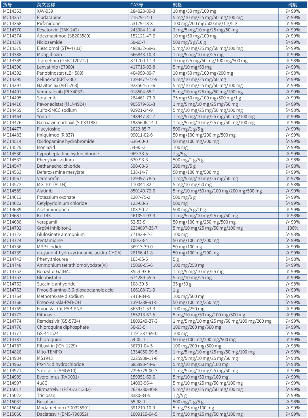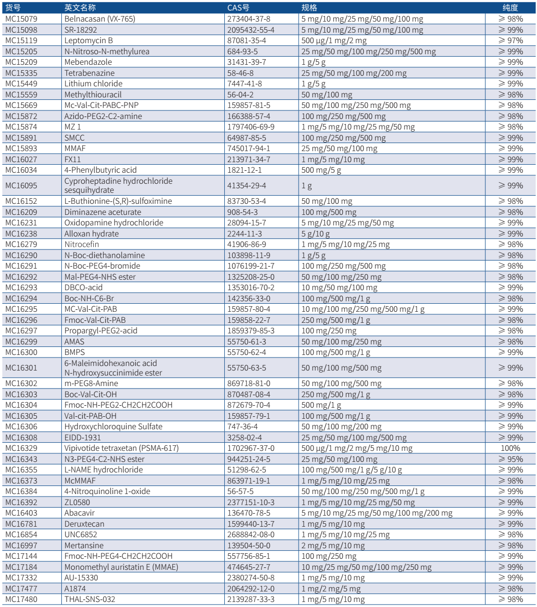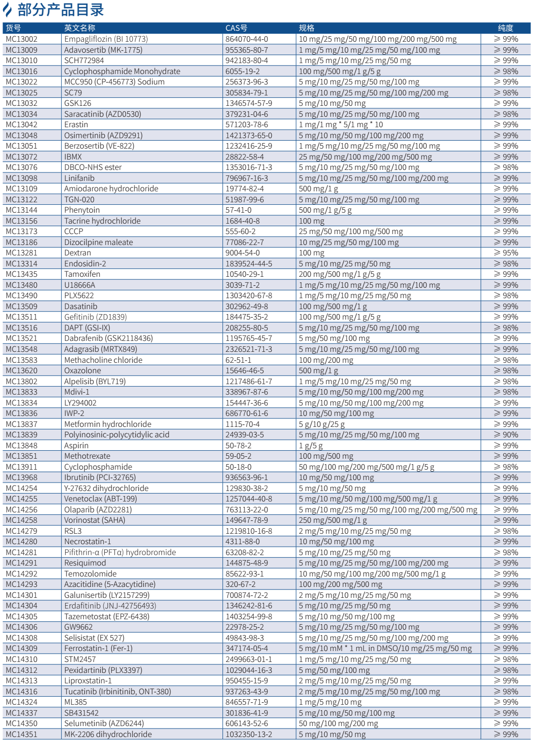 本界面只顯示部分產(chǎn)品信息,若想獲取更多小分子系列產(chǎn)品信息,請(qǐng)聯(lián)系我們銷(xiāo)售或致電技術(shù)支持熱線:400-666-3332