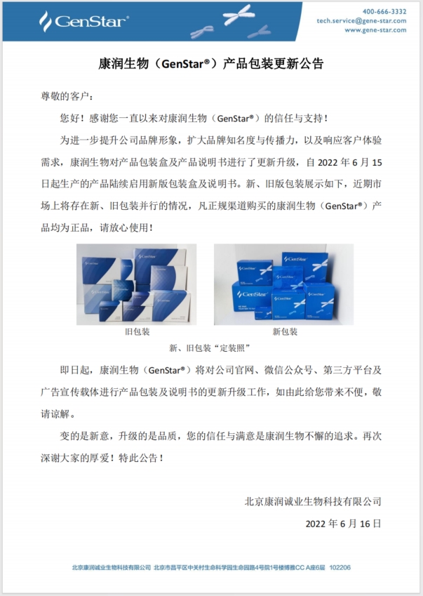 【包裝更換】康潤生物(GenStar)產品包裝更新公告